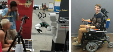 Assitive robotics is one of the big players in the technological revolution we are living in. Expectations are extremely high but the reality is a bit more modest. We present here two realistic initiatives towards the introduction of assistive robots in real care facilities and homes. First, a cognitive training robot for mild dementia patients, able to play board games following caregiver instructions and adapting to patient’s needs. Second, we present the Robotic MOVit, a novel exercise-enabling control interface for powered wheelchair users. Instead of using a joystick the user controls the direction and speed of the powered wheelchair by cyclically moving his arms. Both robotic devices can adapt the interaction to the needs of the user and provide insightful information to researchers and clinicians.