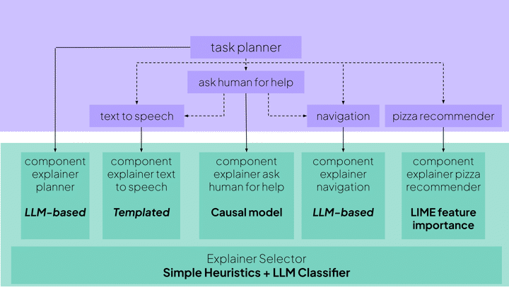 As robotic systems become increasingly complex, the need for explainable decision-making becomes critical. Existing explainability approaches in robotics typically either focus on individual modules, which can be difficult to query from the perspective of high-level behaviour, or employ monolithic approaches, which do not exploit the modularity of robotic architectures. We present HEXAR (Hierarchical EXplainability Architecture for Robots), a novel framework that provides a plug-in, hierarchical approach to generate explanations about robotic systems. HEXAR consists of specialised component explainers using diverse explanation techniques (e.g., LLM-based reasoning, causal models, feature importance, etc) tailored to specific robot modules, orchestrated by an explainer selector that chooses the most appropriate one for a given query. We implement and evaluate HEXAR on a TIAGo robot performing assistive tasks in a home environment, comparing it against end-to-end and aggregated baseline approaches across 180 scenario-query variations. We observe that HEXAR significantly outperforms baselines in root cause identification, incorrect information exclusion, and runtime, offering a promising direction for transparent autonomous systems.