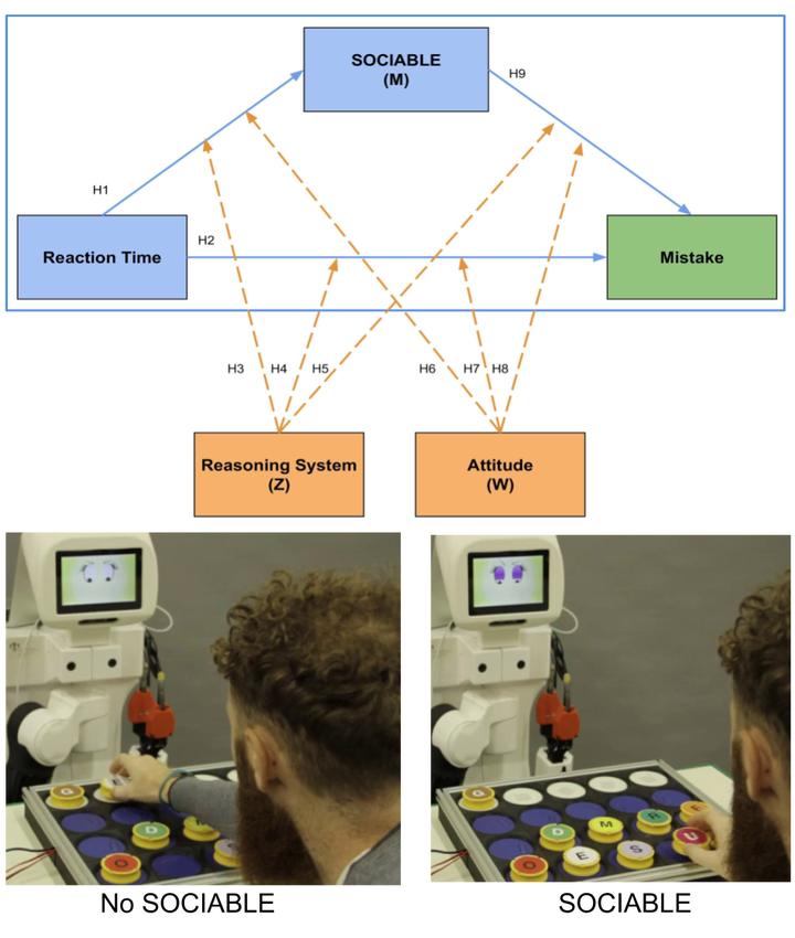 In this paper, we aim to evaluate how humans interpret and leverage backchannel cues exhibited by a robot which interacts with them in an entertainment context. To do so, a conceptual model was designed to investigate the legibility and the effectiveness of a designed social cue, called SOCial ImmediAcy BackchanneL cuE (SOCIABLE), on participant’s performance. In addition, user’s attitude and cognitive capability were integrated into the model as an estimator of participants’ motivation and ability to process the cue. In working toward such a goal, we conducted a two-day long user study (N=114) at an international event with untrained participants who were not aware of the social cue the robot was able to provide. The results showed that participants were able to perceive the social signal generated from SOCIABLE and thus, they benefited from it. Our findings provide some important insights for the design of effective and instantaneous backchannel cues and the methodology for evaluating them in social robots.